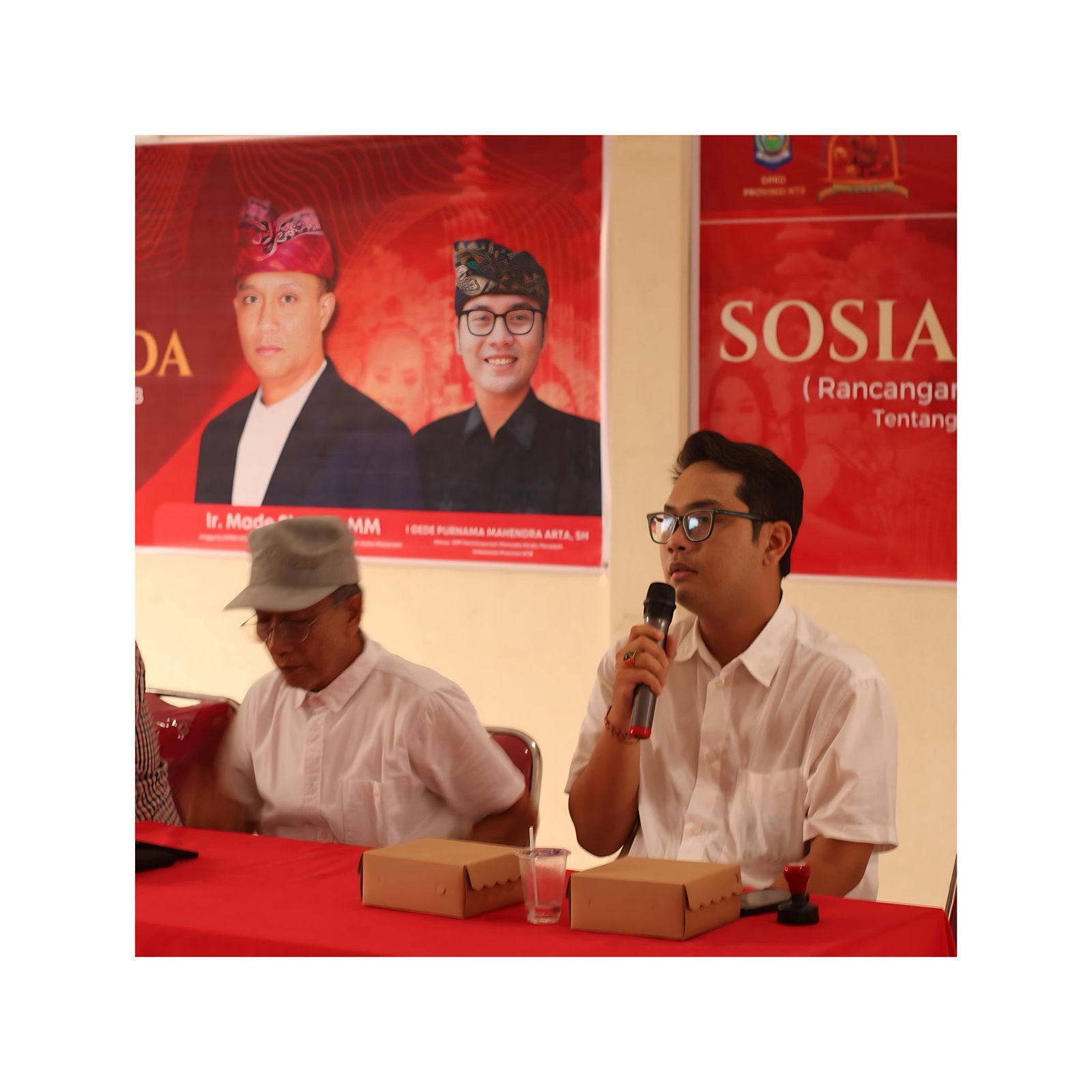 Mataram - Dalam Upaya memberikan pemahaman kepada masyarakat mengenai produk hukum dan membuka ruang partisipasi dalam proses pembentukan Peraturan Daerah khususnya Daerah Pemilihan Kota Mataram, Anggota DPRD Provinsi NTB Ir Made Slamet MM Menggelar sosialisasi Raperda ( Rancangan Peraturan Daerah ) Provinsi NTB pada 8 Maret 2025